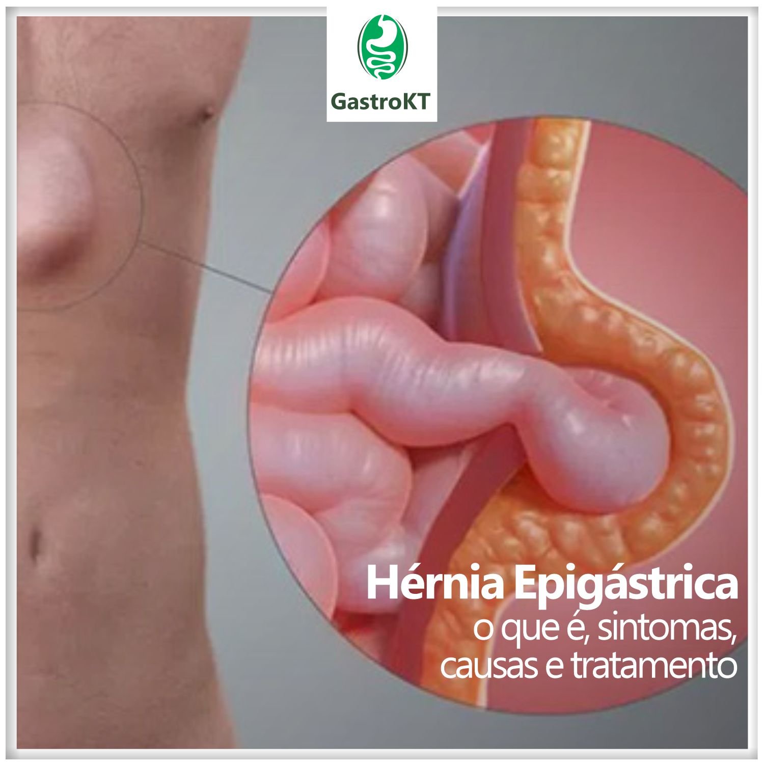 A hérnia epigástrica é caracterizada por uma espécie de buraco, que se forma devido ao enfraquecimento do músculo da parede abdominal, acima do umbigo, permitindo a saída de tecidos para fora dessa abertura, como o tecido gorduroso ou mesmo parte do intestino, formando-se uma saliência que se torna visível na parte de fora da barriga.